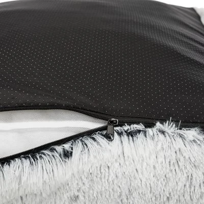 Cojín para perros de peluche de pelo largo, mullido grueso, con mucho relleno y con funda lavable a máquina. Con base antideslizante. Color: blanco/negro