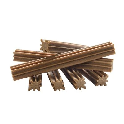 Snack perfecto para el cuidado diario de los dientes de tu perro. Su forma de estrella de 8 puntas y su consistencia especial ayudan a reducir el sarro no solo de los dientes, sino también el que se acumula en los espacios interdentales. Disponible en diferentes tamaños: para perros de razas pequeñas, medianas y grandes.