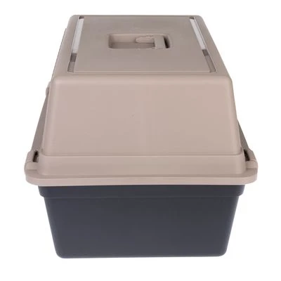 Robusta caja de transporte para gatos y perros pequeños, amplia y con puerta de rejilla y parte superior extraíble para acceder directamente al transportín, de plástico reciclado